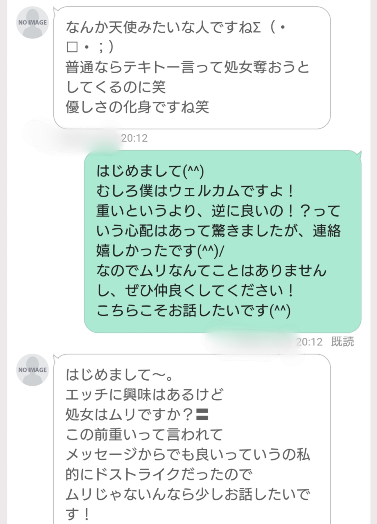 この時点で、なぜか天使認定を受けるほど認めていただけたようで、少し驚きもあったのですが、「それだけまともな男性が処女からして少なく思える」のでしょう。