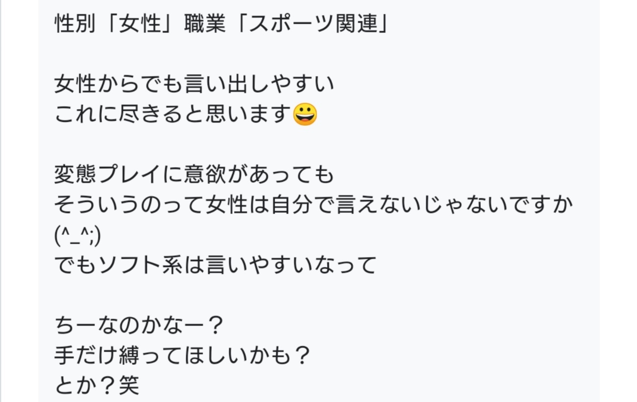 | プレイ内容 | ソフトSMとして選ばれた理由のコメント | コメント数 |