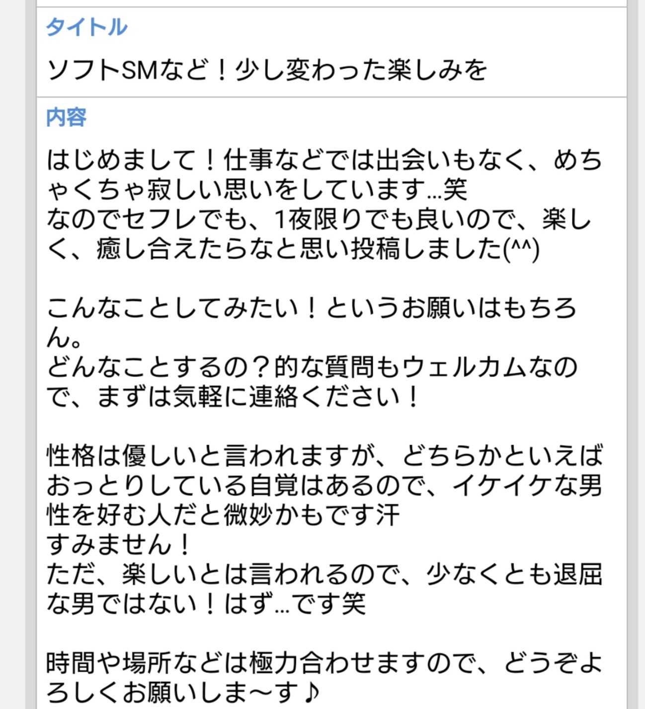 少し興味はあるけどアブノーマル系のチェックをしないで、すぐ会いたい系のみを確認していて、タイトルや内容を見て連絡をくれるようなケースもありましたからね。