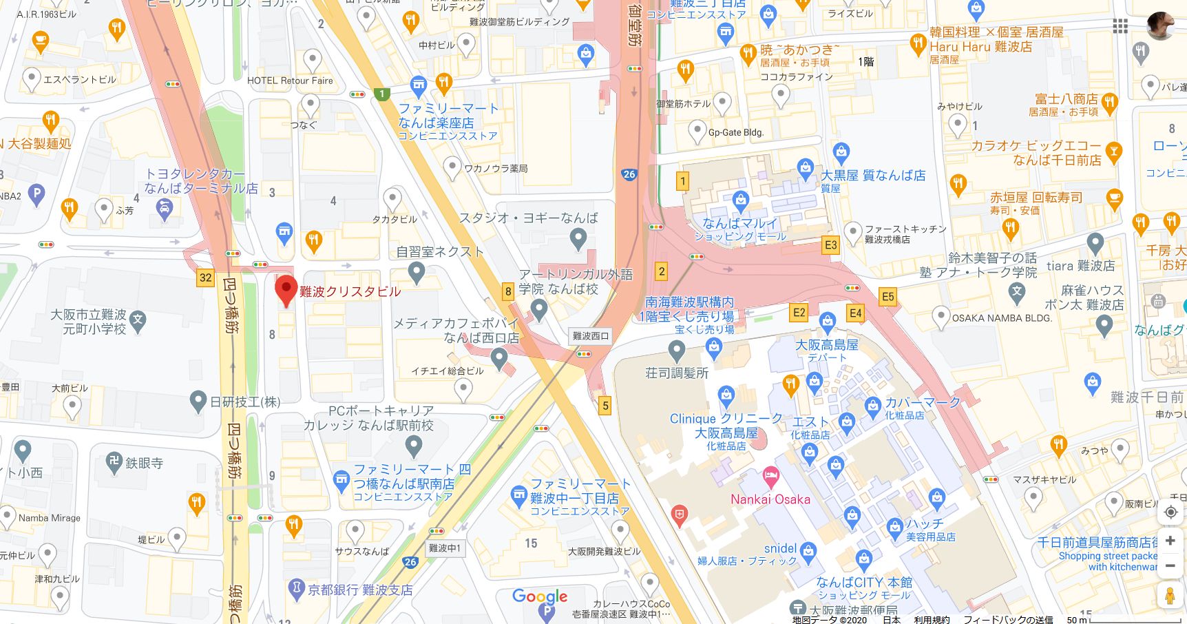 クラブパッション難波店は大阪御堂筋線難波駅の7番出口を出て徒歩5分ほどの位置にあります。